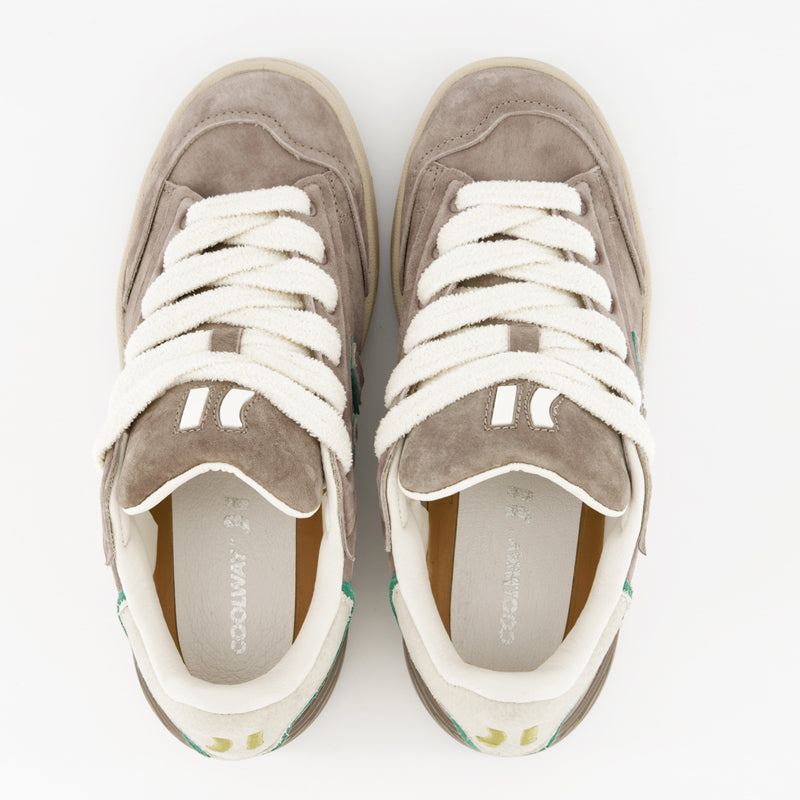 The Bolk Tau Shoe by Coolway is a sneaker inspired by the golden era of mid-’90s skateboarding, primarily constructed from suede with a TPU heel for enhanced durability. The rubber sole is stitched to the upper for a sturdy, lasting build.