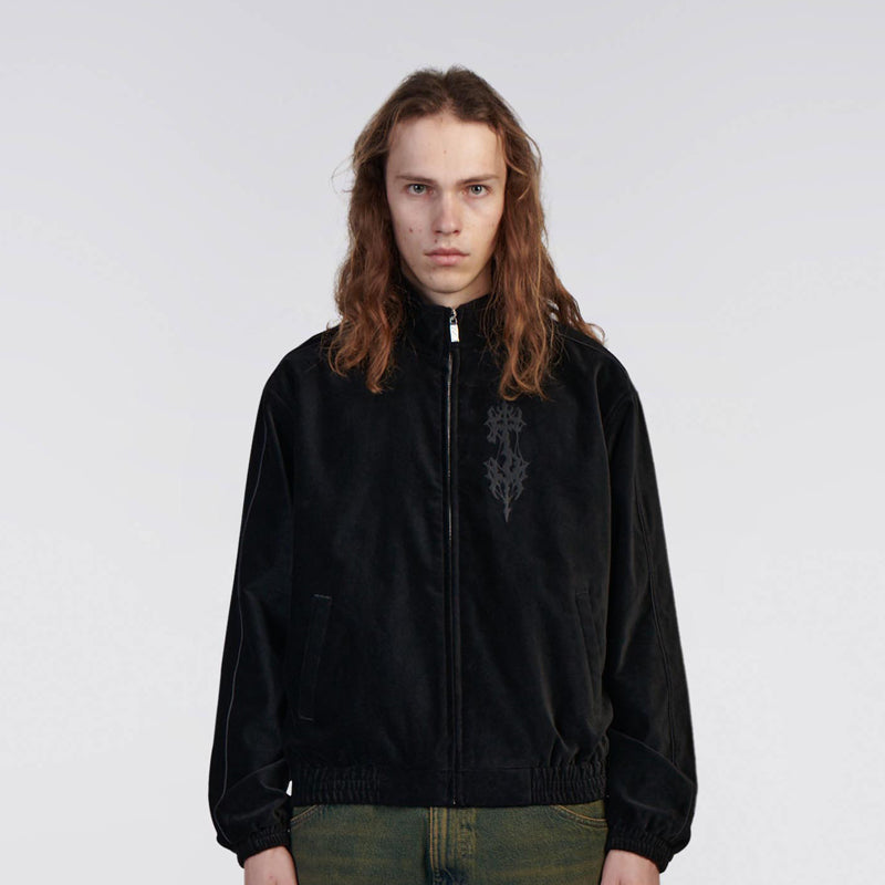 The Edwin Mad Jacket is a regular-fit jacket crafted from rich cotton velvet. It features a metal front zipper, two side pockets, and elasticated cuffs and hem for a snug yet comfortable fit. Embroidery detailing on the back and chest adds a distinctive signature touch.