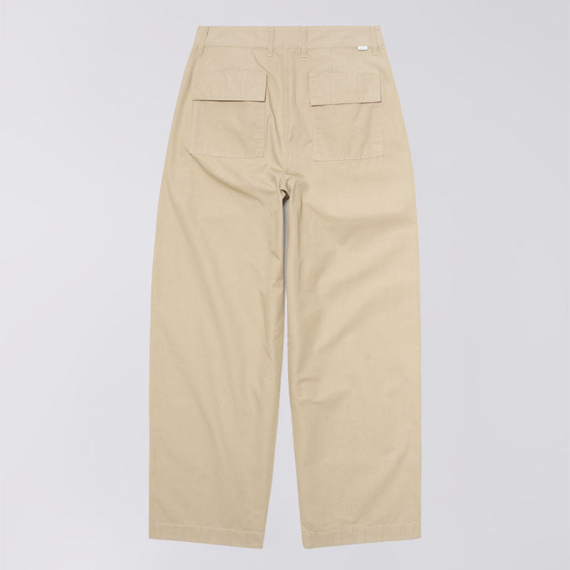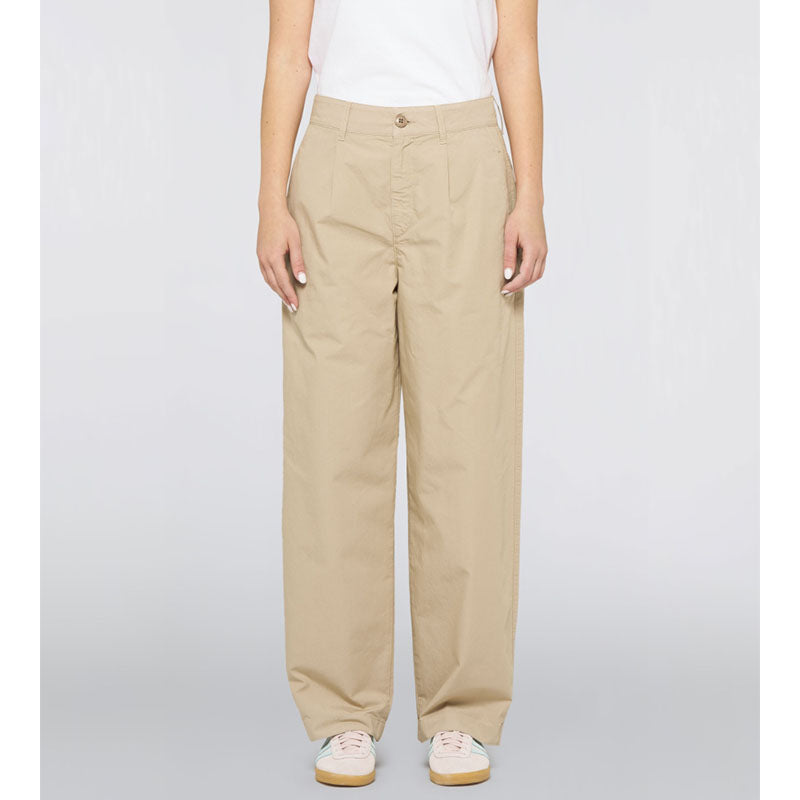 The Edwin W' Nora pant is made from lightweight PFD Summer Compact Poplin, which helps regulate body temperature and wick away moisture. Featuring a high-rise fit, front pleats and a wide fit through the leg, it combines comfort and modern style.
