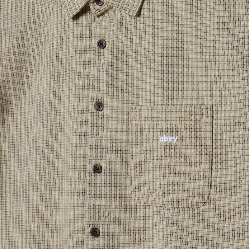 The Obey Jimmy Woven is a laid-back button-up shirt designed for relaxed everyday wear. It features a scalloped hem, a single chest pocket, and subtle Obey embroidery on the chest.