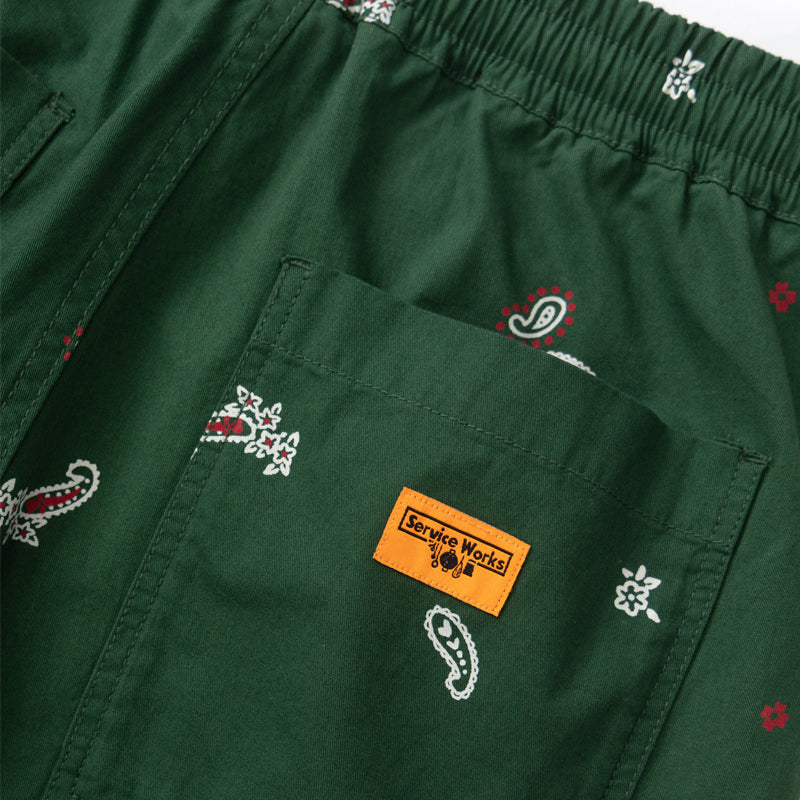 The Service Works Paisley Chef Shorts feature a relaxed fit and a paisley print. Designed for comfort, perfect for everyday summer wear.