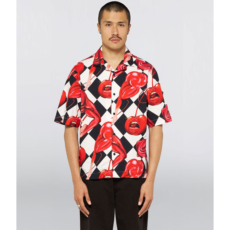 Το Edwin Miki Kim Cherry Shirt είναι ένα κοντομάνικο πουκάμισο με μοναδικό μοτίβο.