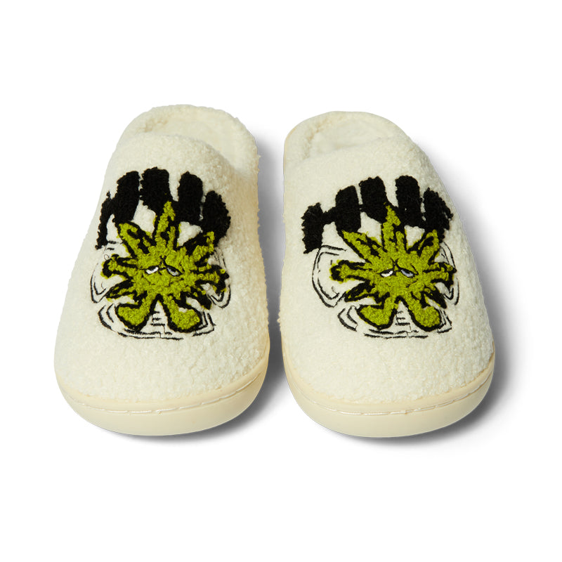 HUF Snow Angel Fuzzy Slipper παντόφλες από 100% πολυεστέρα, με πολύ άνετη επένδυση και σχέδιο “Green Buddy” μαζί με το λογότυπο HUF.